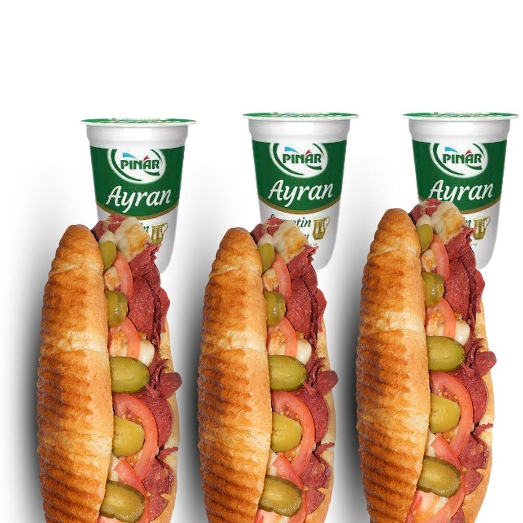 3'lü Tam Porsiyon Ekmek Arası Sucuk Menü + 3'lü Ayran